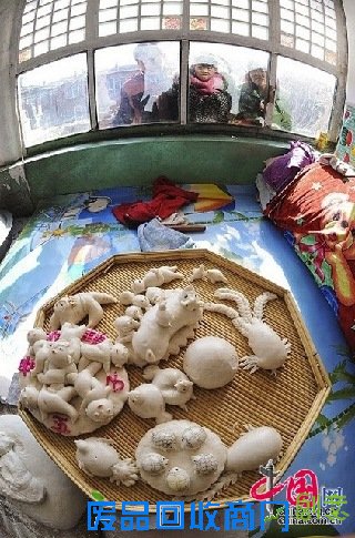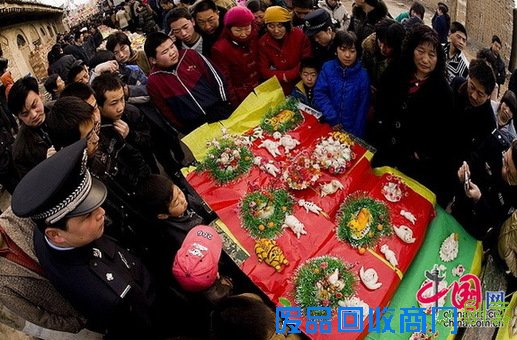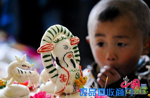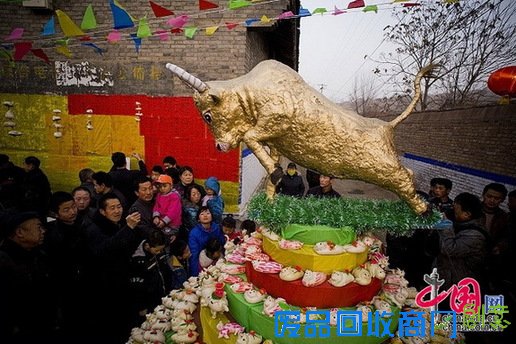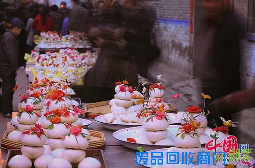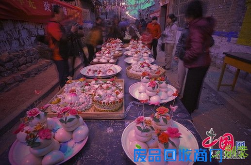 人们为了心诚在晚上4点钟以前就要摆出贡品(面塑)了,有谁摆到越前越吉祥之说。今年的金牛是晚上3点钟就摆出来了。