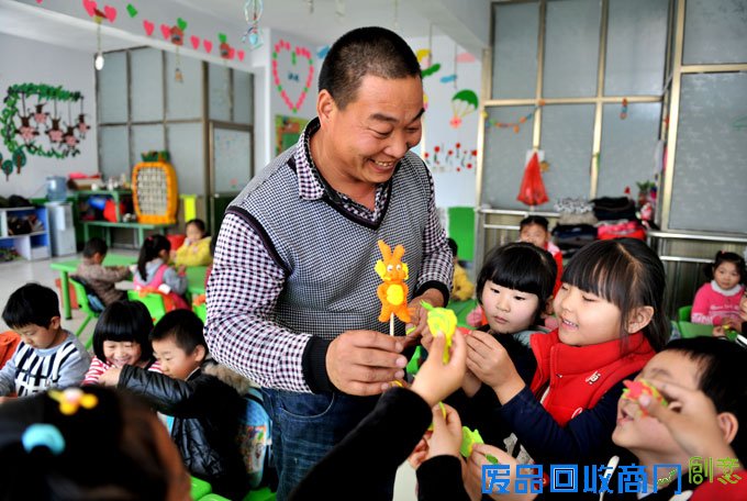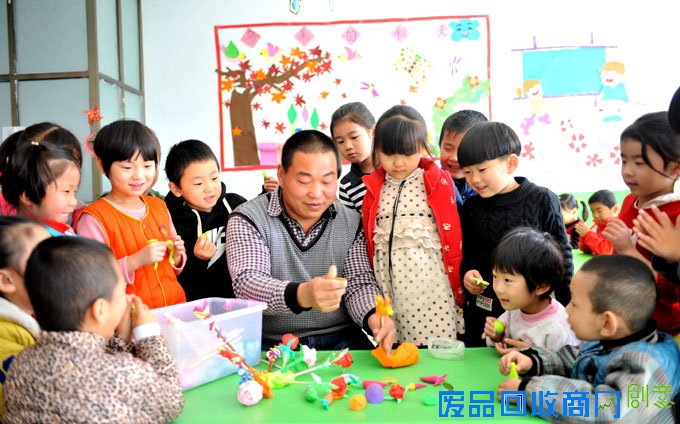 免费教授幼儿园的孩子捏面人。