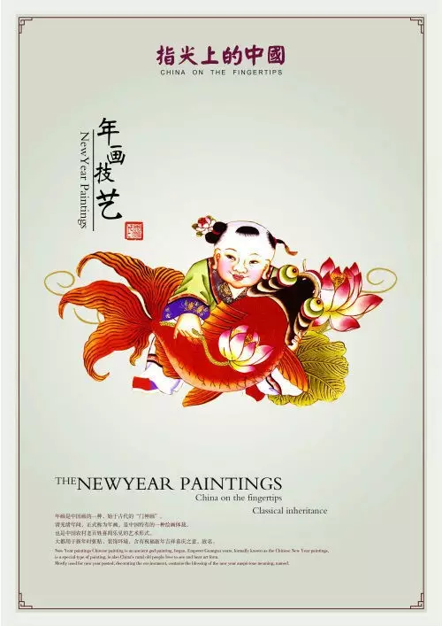 年画是中国画的一种,始于古代的“门神画”。是中国特有的一种绘画体裁,也是中国农村老百姓喜闻乐见的艺术形式。大都用于新年时张贴,装饰环境,含有祝福新年吉祥喜庆之意,故名。传统民间年画多用木板水印制作。