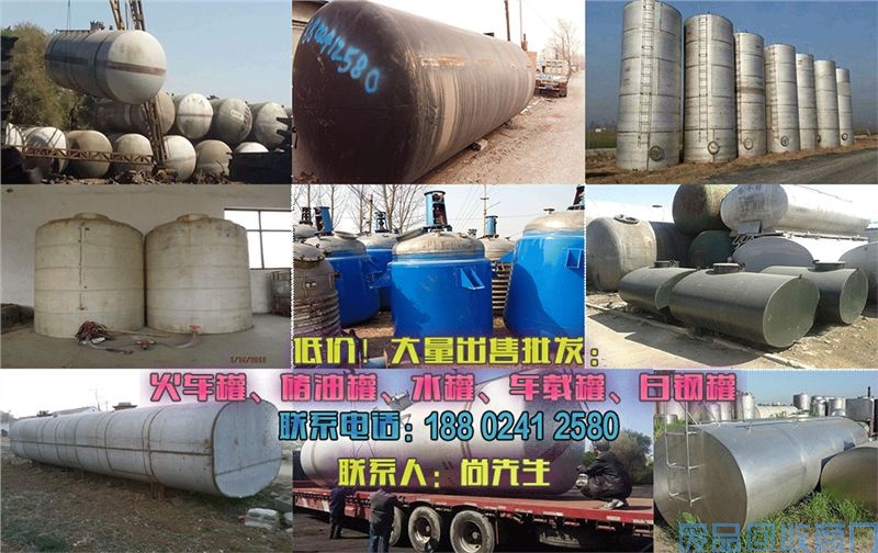 沈阳供应二手油罐_辽宁油罐出售_沈阳二手水泥罐出售_沈阳二手不锈钢罐批发_沈阳二手水罐出售_辽宁火车罐出售,储油罐、旧水罐:轻油罐,柴油罐.汽油罐,焦油罐、保温罐、发酵罐、食油罐、火车槽罐、加油站罐、铁罐、化工罐、油车罐、水泥罐、反应釜、防腐罐,不锈钢罐,铝罐、橡胶罐、不锈钢罐低价销售,各种规格尺寸容积-1-100立方卧式罐,立式罐,沈阳尚诚出售二手产品价格合理,保质保量,负责吊装,物流配货。联系我们188-0241-2580