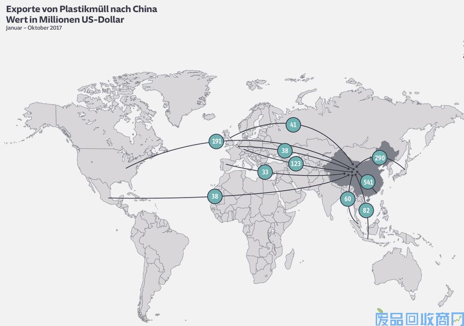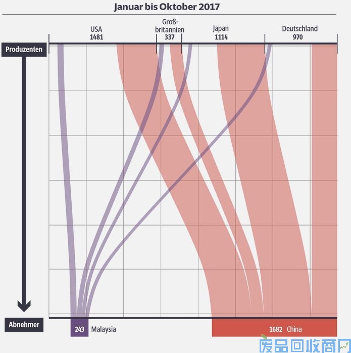 2017年前十个月,中国接收美、英、日、德四国废品数量约为马来西亚的七倍之多