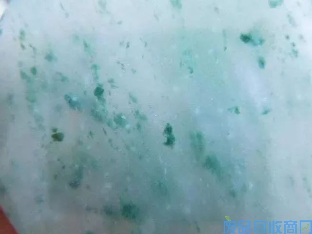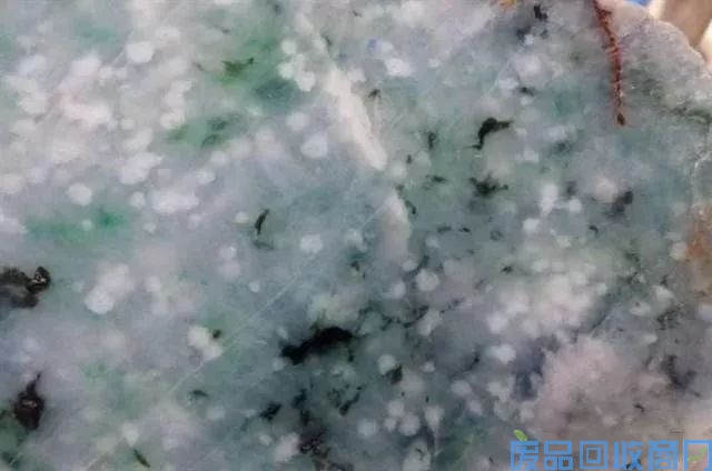 杂质造成的棉,翡翠中常会含有外来的杂质,有的杂质结构比较大,有的比较细小。有时候是聚在一起,有时候是分散开来。聚在一起的时候会形成块状的棉,如木那特征的点状棉。分散开来的时候,会散布在结构的缝隙里,数量较多时会让翡翠看起来混沌污浊,很多灰水底的翡翠就是这种情况。