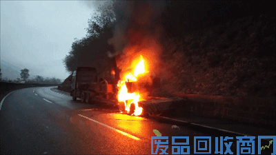 一辆大货车正在起火