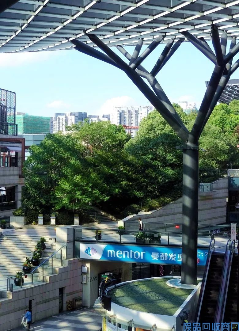 徐汇绿地缤纷城建筑设计由日本著名设计师操刀,设置了一条从一层直接联通屋顶露台的健康步道,沿途与自然景观有机结合,让消费者在购物休闲的同时,还可以贴近和感受自然。