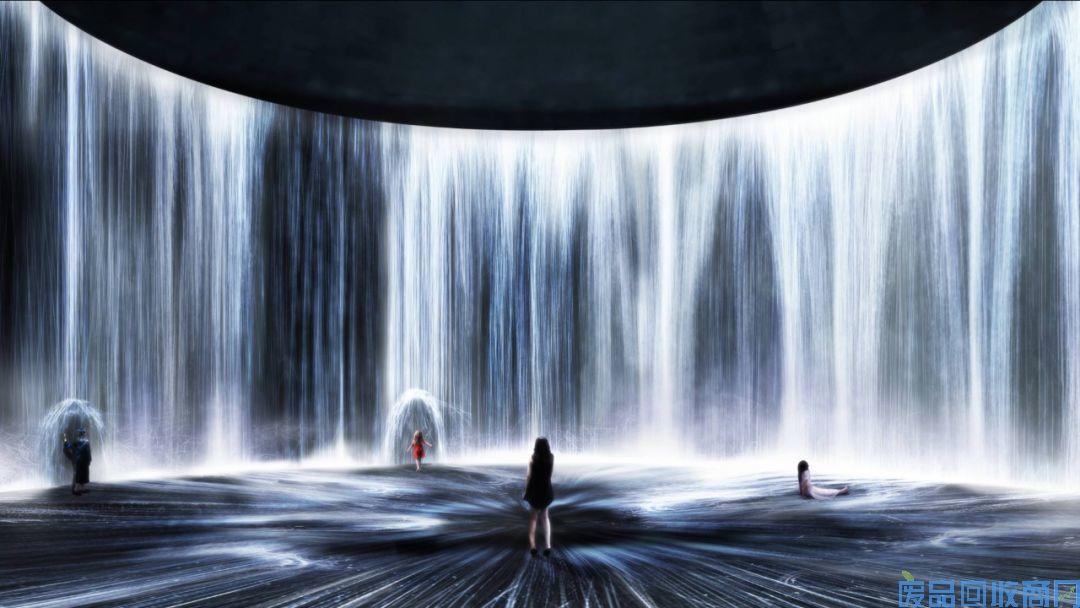 「油罐中的水粒子世界,消除作品的边界」超越了作品间的界线,与其他的作品相互影响。在油罐的空间里,从天而降,形成了巨大的瀑布!观众立于作品前时,作品中瀑布的流动方向会应运而变。