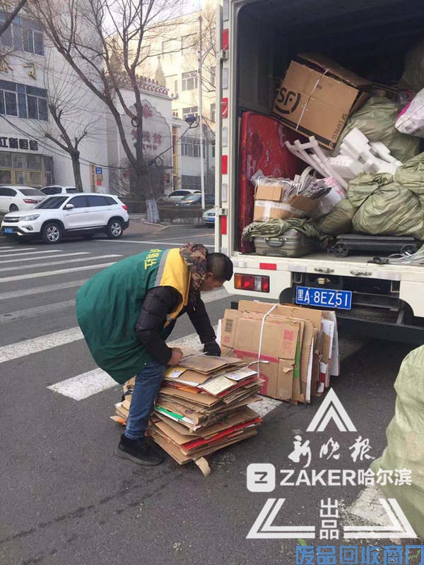 几天前,哈尔滨供销物资集团的 " 我来收 " 线上回收服务平台的回收员连俊玉收到一份订单。连俊玉告诉 ZAKER 哈尔滨记者,那是香坊区一个小区的订单,订单客户是个人住户,家中是娘俩儿,女儿负责卖废品," 这位女士拿来东西挺凌乱,纸盒、易拉罐什么的,还有很多垃圾。" 连俊玉说,根据公司规定,现场要简单分拣好后称重,然后装车。于是,连俊玉就在不远处进行分拣,李女士在家门口等候。