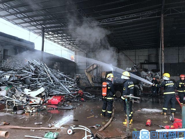 在赶赴现场途中,消防员远远看到着火现场冒出大量白烟,15时49分,消防员抵达现场,发现现场钩机处于内燃状态,且火势正在向周围的废品蔓延。