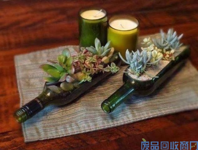 用空酒瓶养花,可以把喝剩下的酒瓶简单处理,装上疏松透气的土壤就能养花了,这样一摆,漂亮!