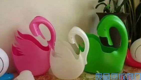 用洗衣液瓶子经过修剪打磨,变成漂亮的花盆,小天鹅花盆是不是很优美呢。