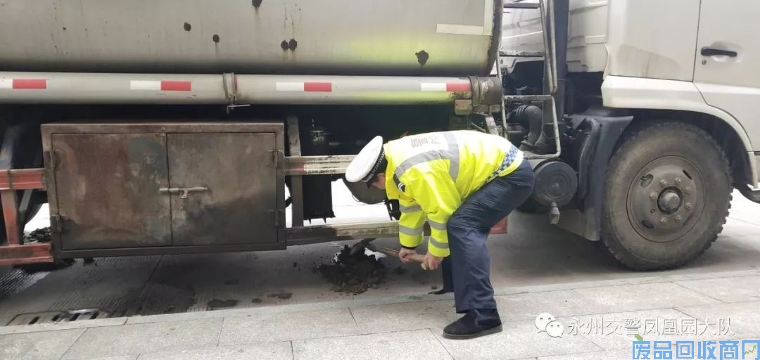 2月19日上午10时许,正在执勤的城区中队民警接到122指挥中心电话:有群众报警称银海花园古玩市场路边有辆油罐车正在不断的漏出油来,存在较大的安全隐患,希望交警联系车主处置。