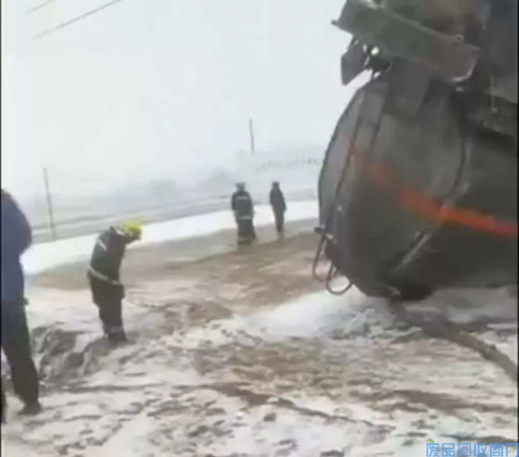 今天上午9点多,油罐车还在河沟里,天气恶劣,道路上都是积雪,现场消防队员们还在现场排险检查,再次确认罐体未再发生泄漏!