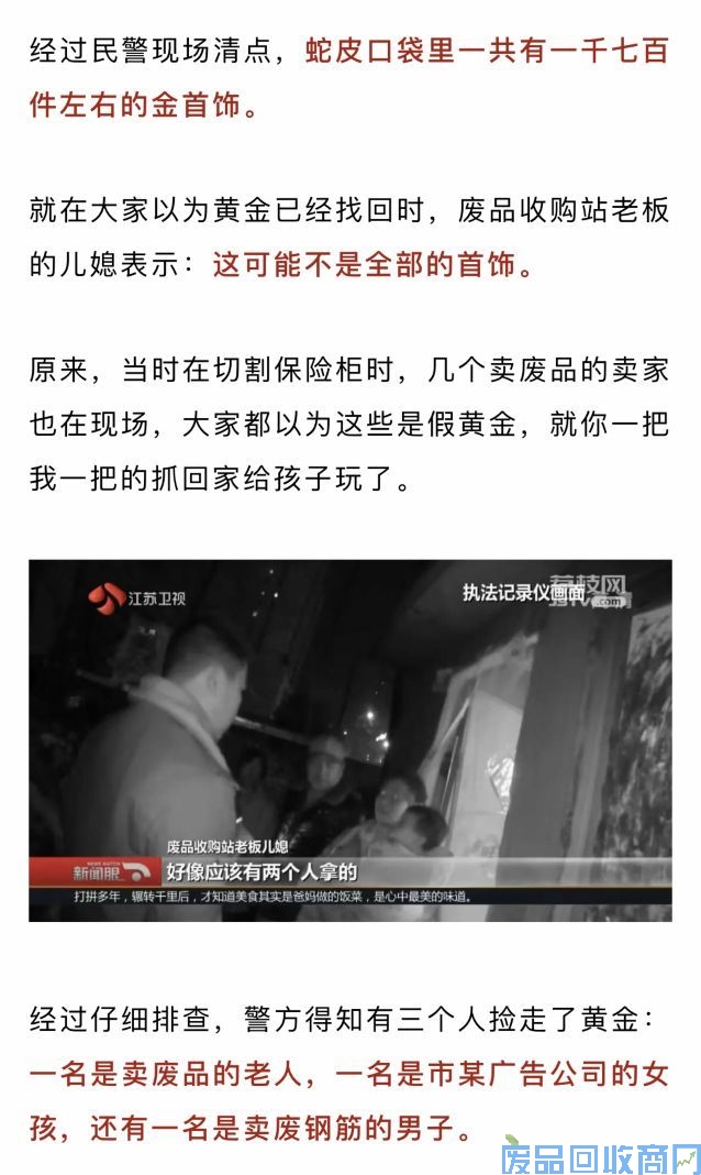除了卖废旧钢筋的男子还没有找到之外,其余被拿走的首饰已经全部找回了。