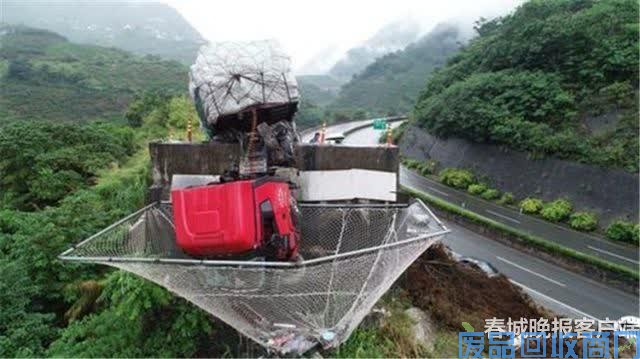 去年7月26日上午,昆磨高速公路玉溪段元江辖区的27公里长下坡发生一起大货车失控冲进自救匝道的事故。大货车车头冲出匝道挡墙,挂在一百米多米高的悬崖上,幸运的是,车上两人,虽然掉出驾驶室,但落在了挡墙外的网兜里,一人轻伤,一人擦伤,均没有生命危险。