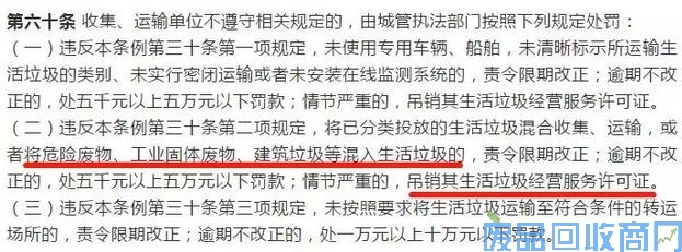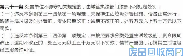 将危险废物、工业固体废物、建筑垃圾等混入生活垃圾的,违者最高将处罚五万元罚款,严重者吊销其经营许可证。