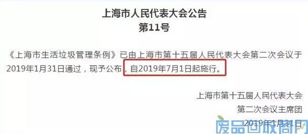 2019年1月31日,为从源头提高回收质量,节约回收成本。上海市十五届人大二次会议表决通过《上海市生活垃圾管理条例》,并将于7月1日正式开始实施。