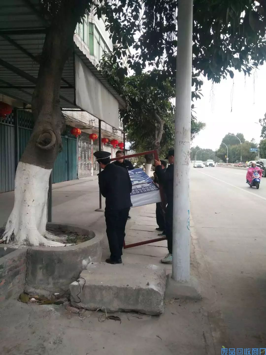 经了解,经营修理店的是一对老夫妻,夫妻俩均有不同程序的残疾,平时会收购些废品贴补生活,早上刚回收了几车废品,就直接堆放在店门前。由于福厦路车流辆较多,这些废品随意堆放不但严重影响市容市貌,而且运货车辆随意停靠在路边,使原本就不宽敞的道路显得更加拥挤,也给过往行人带来安全隐患。