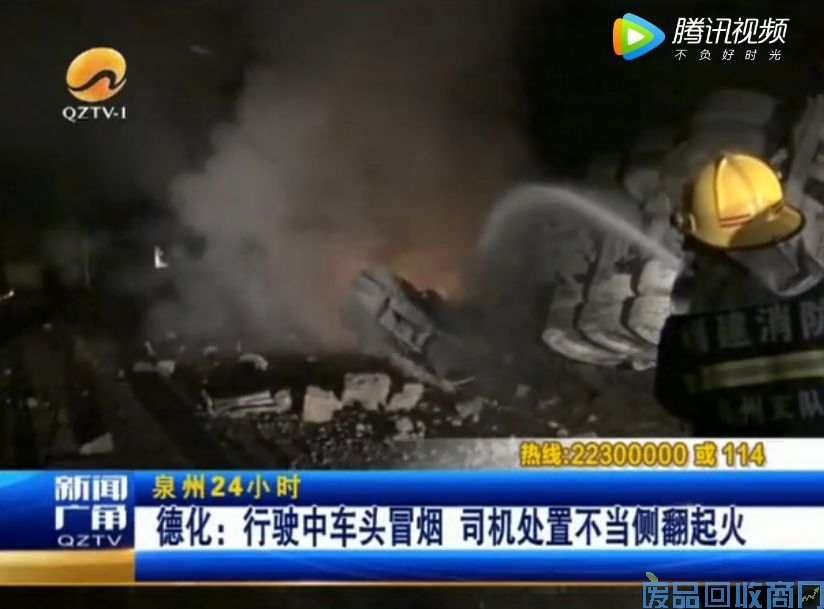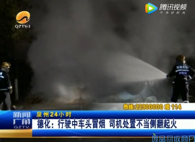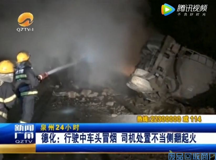 3月23日天凌晨0点,省道203线德化许厝村路段。一辆水泥罐车在行驶中车头冒烟,司机准备靠边停车处理,可能是心情紧张用力过猛,造成车辆侧翻在路边,并着了火。经消防十多分钟的处置,明火被扑灭。(记者:洪开垦 通讯员:罗兵 王韬)