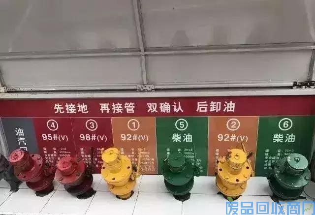 当然储油罐也是不同品号汽柴油标得清清楚楚,不仅油罐上有标号,储存不同油品的油罐还在颜色上加以区分。