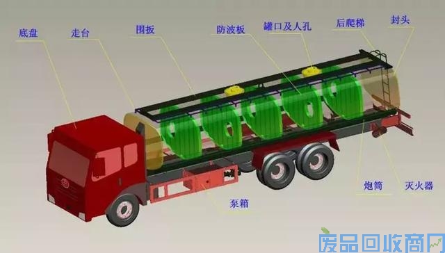 一辆油罐车虽然外表看上去是一个大罐子,但它的内部是是分仓结构,就是把大罐子隔开,最多的是分割成6个仓,这6个仓可以装同一种标号的油,也可以装不同标号的油,中间的隔板都是经过严密设计的,这样即使每个仓装的油不同,也不会发生混合情况。