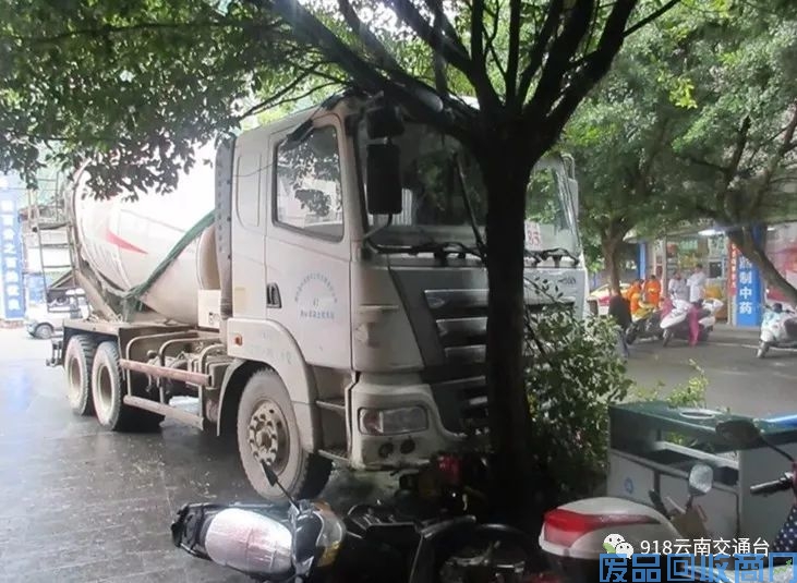 “我在店门口坐着,一抬头突然看到一辆水泥罐车疯狂地朝我们冲过来,我们赶紧冲进店里躲避。”