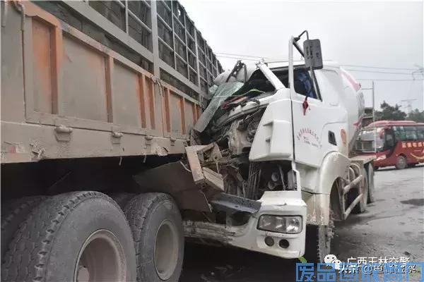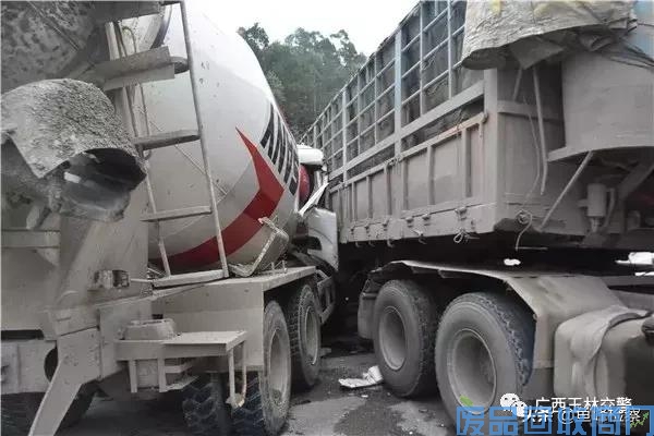 1月16日,玉林发生了一起大货车和水泥罐车相撞的事故,事故发生的瞬间真是惊心动魄,所幸没有造成人员伤亡。