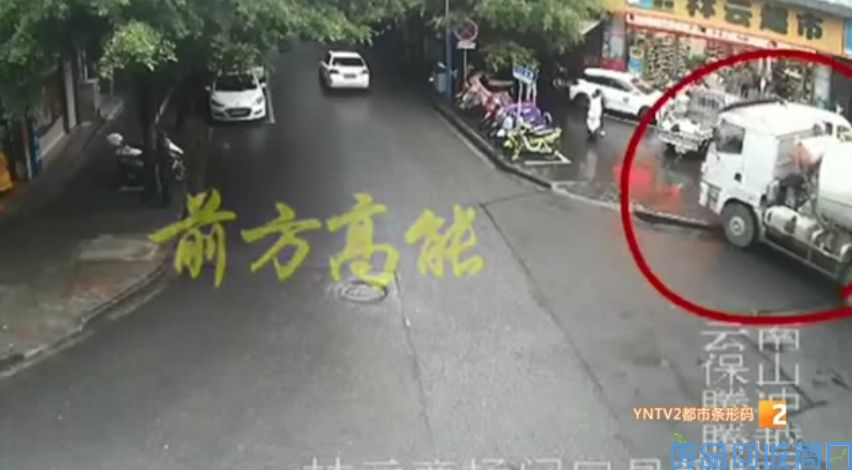 现场视频记录:水泥罐车像一头疯狂的公牛狂奔不止↓