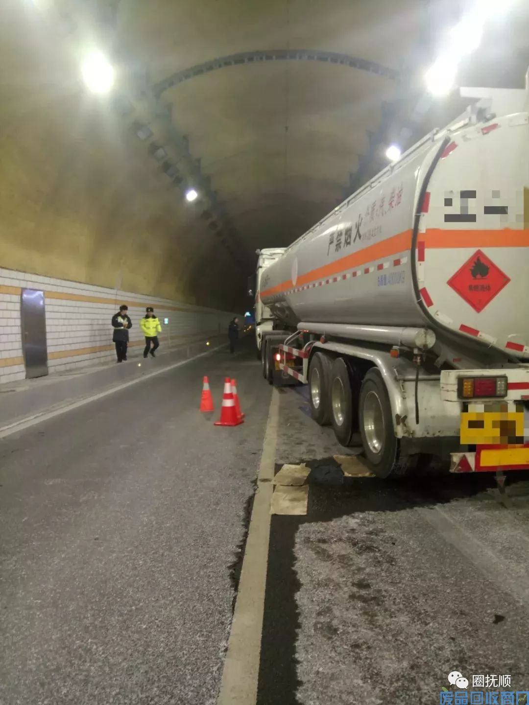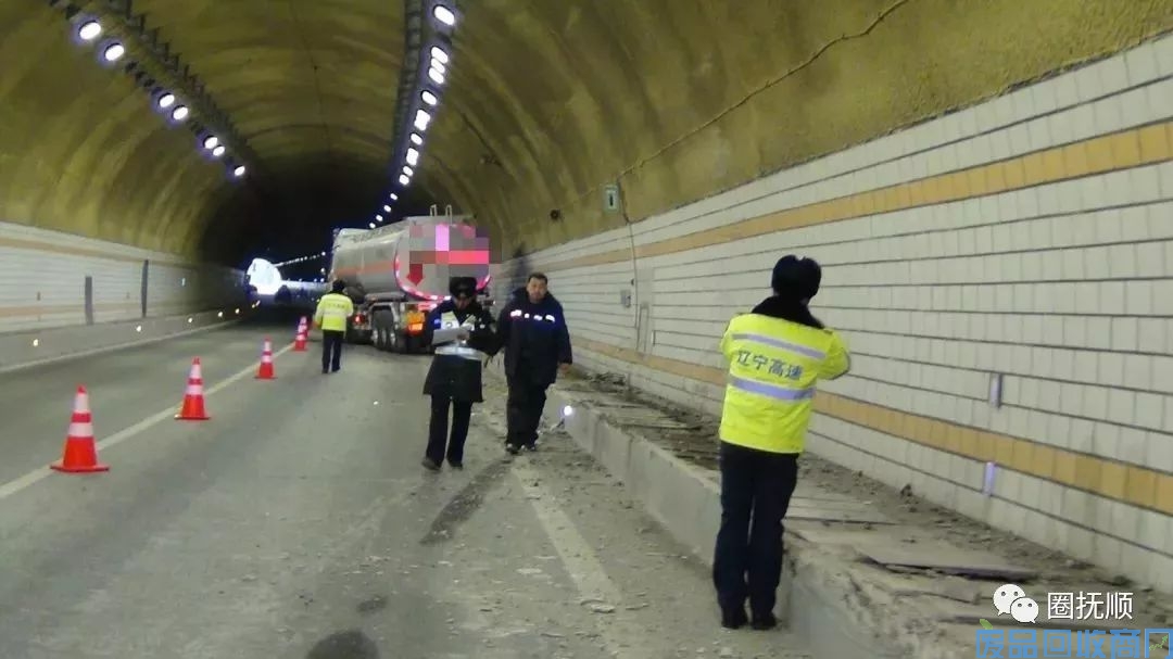 2月10日(正月初六)下午15时40分,抚顺交警高速三大队接到报警称:在抚通高速(沈阳方向)新宾2号隧道内,一辆油罐车由于驾驶人操作不当造成车辆与隧道内管井壁相撞,油罐车受损严重,装有 660升的油箱里的燃油正在泄漏!