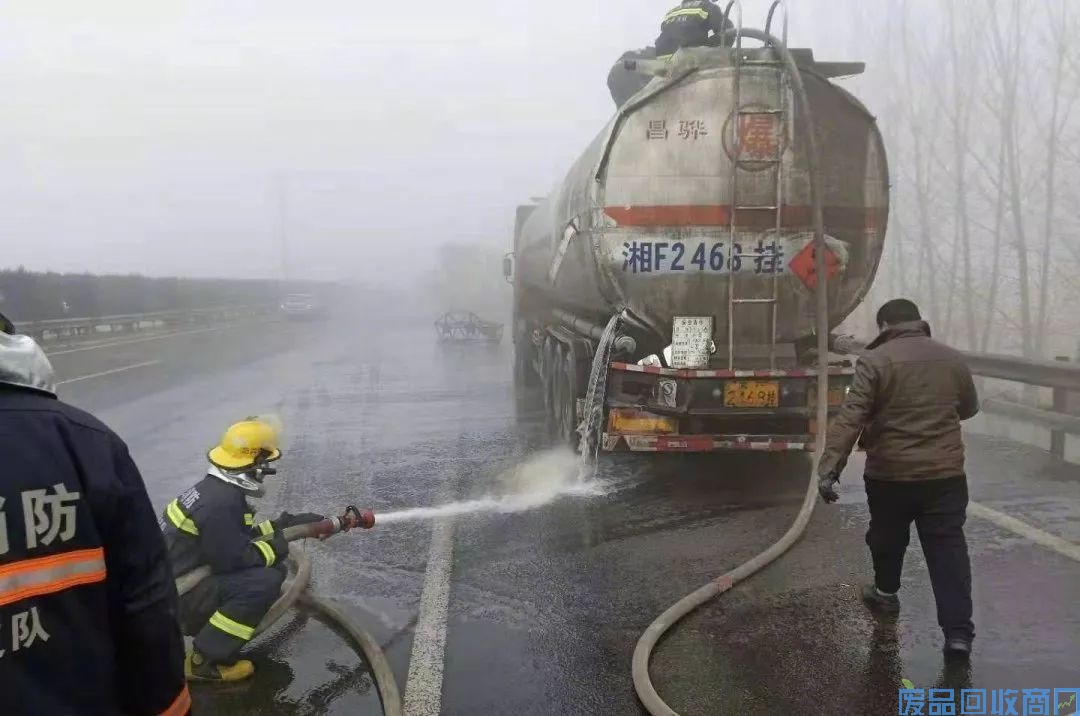 2月21日上午,济南市出现大雾天气,部分高速公路封闭,浓雾弥漫之中,青银高速济南段发生了惊心动魄的一幕。一辆装载31吨汽油的危化品运输车发生追尾事故,罐体尾部被撞出一个洞,汽油倾泄而出,交警、消防紧急出动救援,不到一个小时将漏洞填补止住了倾斜,经核实,事故系贾某驾驶湘F***8重型半挂牵引车由东向西行驶至青银高速100公里+400米处与李某驾驶的装载31吨汽油的湘F1***7重型半挂危化品车发生碰撞,造成湘F1***7罐车11吨的汽油泄漏,后续情况有待进一步核实。 “ 点评:在雾天行驶时,驾驶员应将前后雾灯全部开启,如果雾气非常大,还可将双闪灯打开,开启雾灯和双闪灯的主要作用,是为了让其他车辆的司机可以更好地观察到你,避免追尾和刮擦事故的发生。 |