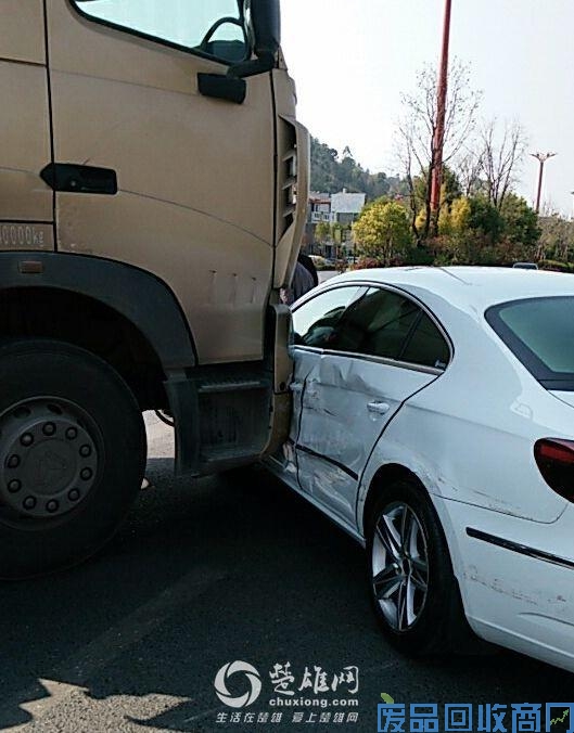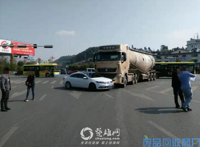 据网友爆料,昨天(3月14日)下午15时50分左右,楚雄市永安路与威楚大道路口一辆小轿车和一辆油罐车相撞,小轿车左侧车门受损严重,人员受伤情况不详。