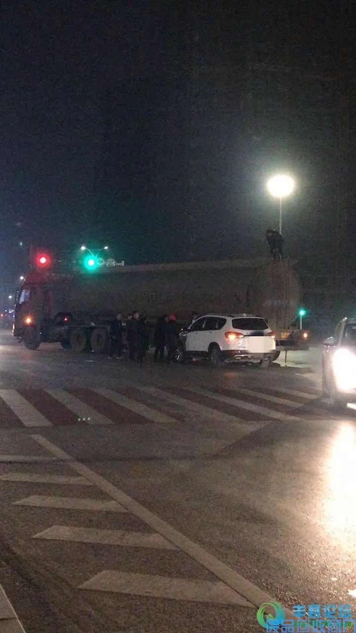 19日21:30分左右,在丰县向阳路和南环路红绿灯路口发生一起交通事故,一辆直行的私家车和一辆半挂油罐车发生碰擦,事故未造成人员受伤,具体原因不详。