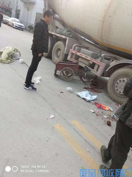 近日,丰县论坛网友爆料:华山钢城车辆登记门口发生一起事故。一辆水泥罐车在倒车过程中,将一名骑脚蹬三轮车的老人撞到。事故现场有大量血迹,老人的三轮车已被挤压变形。事发后,120急救车将老人送往医院进行治疗,具体伤情不详...