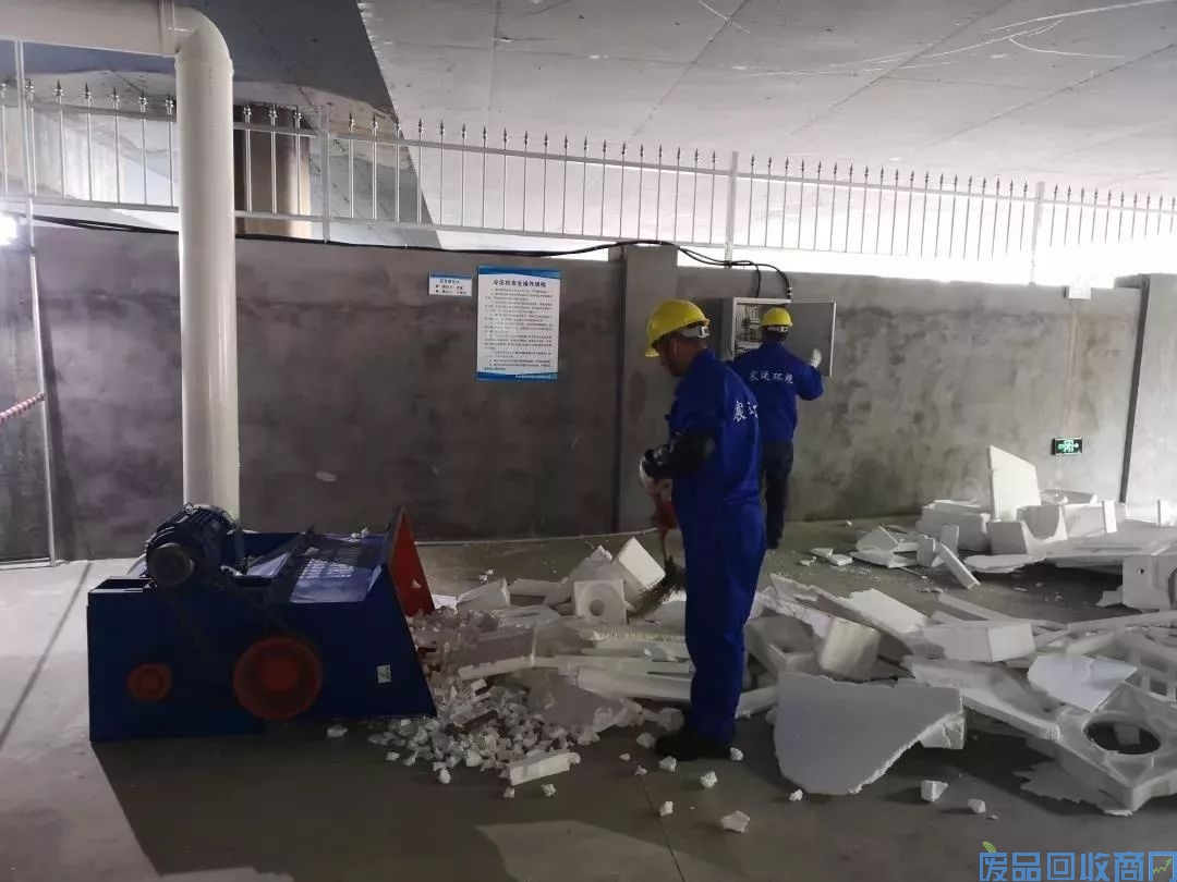 处理中心好比一个巨大的神奇工房,“回收小哥”搬运回来的再生资源垃圾,通过泡沫冷压机、木料粉碎机、海绵打包机等专业器械的操作,或打磨成脱胎换骨的新品,亦或分解成同等质量的其它物品,实现资源的“再生”及循环利用。