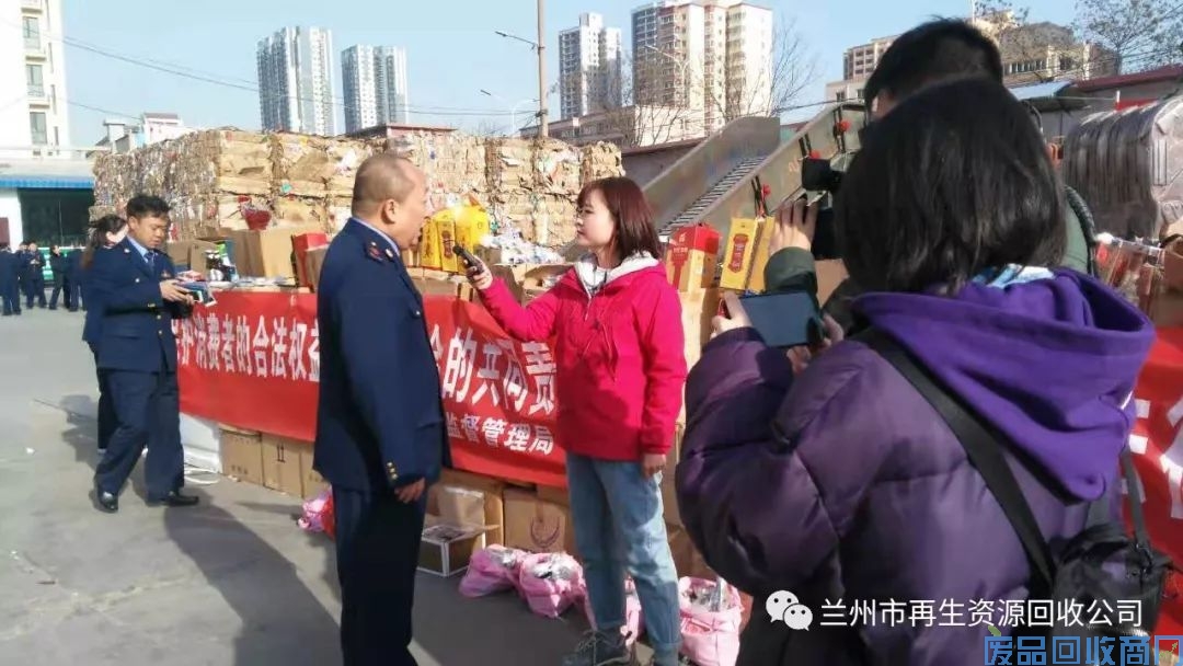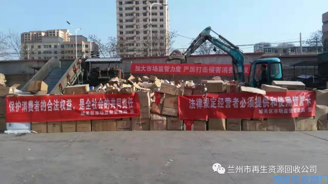 为贯彻落实《消费者权益保护法》,牢固树立消费者权益至上的理念,3月15日上午10时,兰州市城关区市场监督管理局在南山路兰州市再生资源回收公司红山西路分拣中心设立销毁假冒伪劣罚没物品现场,举行集中销毁活动。省、市、区市场监督管理局主要领导、兰州市再生资源回收公司党委书记、经理戴南昌、市场监督管理局工作人员以及分拣中心全体员工200余人参与了销毁活动。