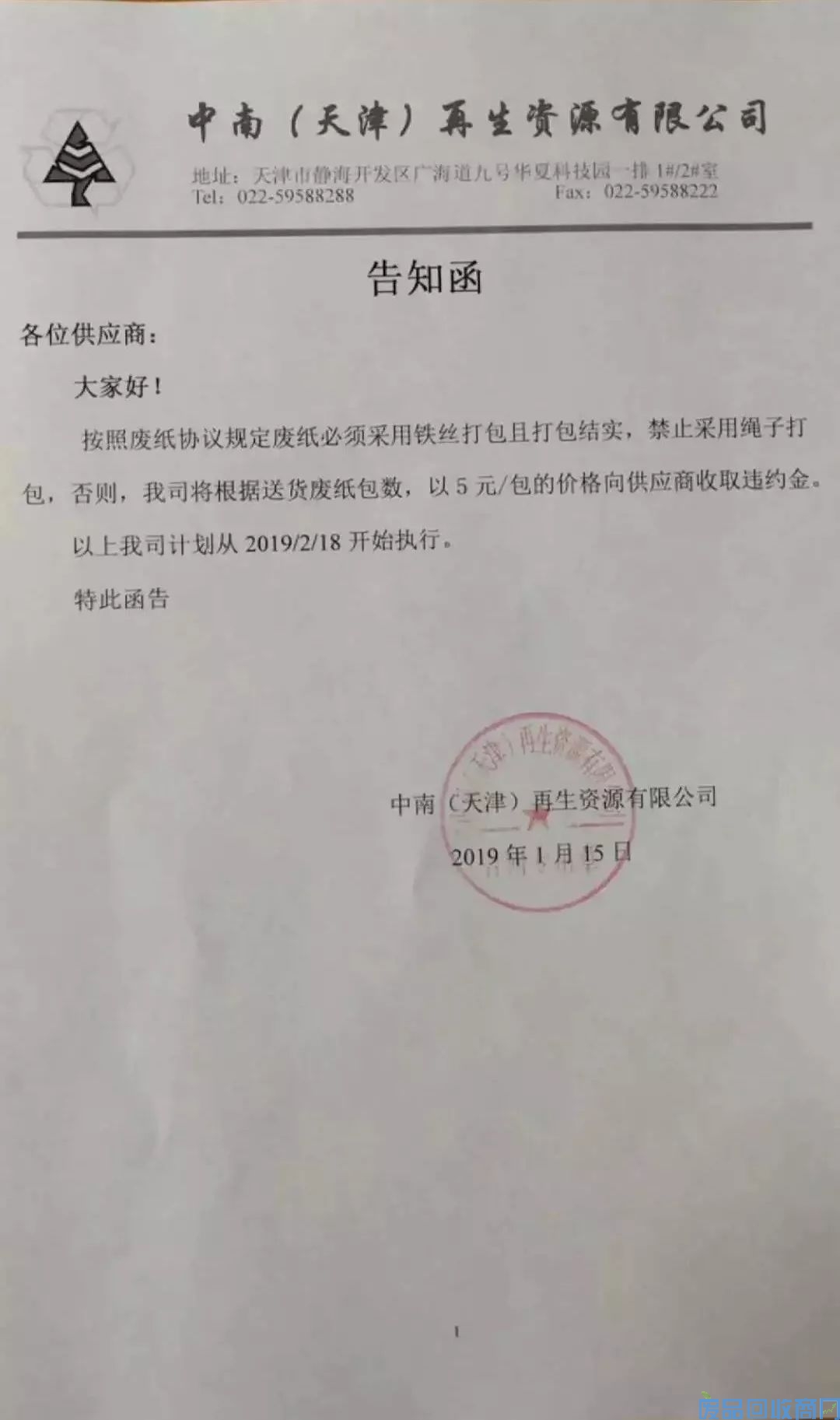 原标题:中南(天津)再生资源有限公司,废纸必须采用铁丝打包。