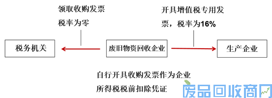 2008年,《关于再生资源增值税政策的通知》(财税[2008]157号)取消了“废旧物资回收经营单位销售其收购的废旧物资免征增值税”和“生产企业增值税一般纳税人购入废旧物资回收经营单位销售的废旧物资,可按废旧物资回收经营单位开具的由税务机关监制的普通发票上注明的金额,按10%计算抵扣进项税额”的政策。单位和个人销售再生资源,应当依照《增值税暂行条例》及其实施细则及财政部、国家税务总局的相关规定缴纳增值税。但个人(不含个体工商户)销售自己使用过的废旧物品免征增值税。增值税一般纳税人购进再生资源,应当凭取得的增值税条例及其细则规定的扣税凭证抵扣进项税额,原印有“废旧物资”字样的专用发票停止使用,不再作为增值税扣税凭证抵扣进项税额。此后,部分地区的废旧物资回收业务不再使用专用发票和收购发票,回收企业从个人散户收购废旧物资需要取得税务机关代开的发票进行税务处理。而部分地区虽取消了专用发票,但仍然保留了收购发票的使用,允许回收企业自行领购、开具废旧物资收购发票作为企业所得税税前扣除凭证,收购发票增值税税率为零。