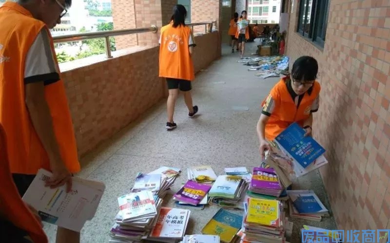 想在东莞六中的公共活动区域丢垃圾是不可能的,学校的垃圾桶全都“藏”在课室的后走廊上,每个班级有三个垃圾桶,分别用来装纸类、瓶罐类和其余垃圾。高一(17)班的劳动委员告诉我们,“平常最多的是纸类,试卷草稿纸经常有,都丢到这个绿色的垃圾桶。另外,书籍是回收利用的,学长学姐会把旧书传给我们。”