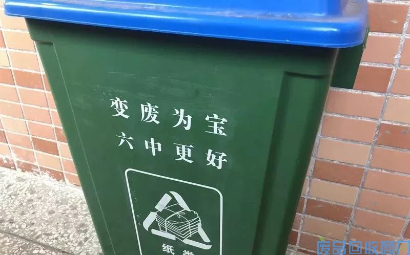 定制“变废为宝,六中更好”字样的回收垃圾桶