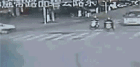 水泥罐车车头底下压着一辆电动车推行着,司机竟然没有察觉,还继续行驶。