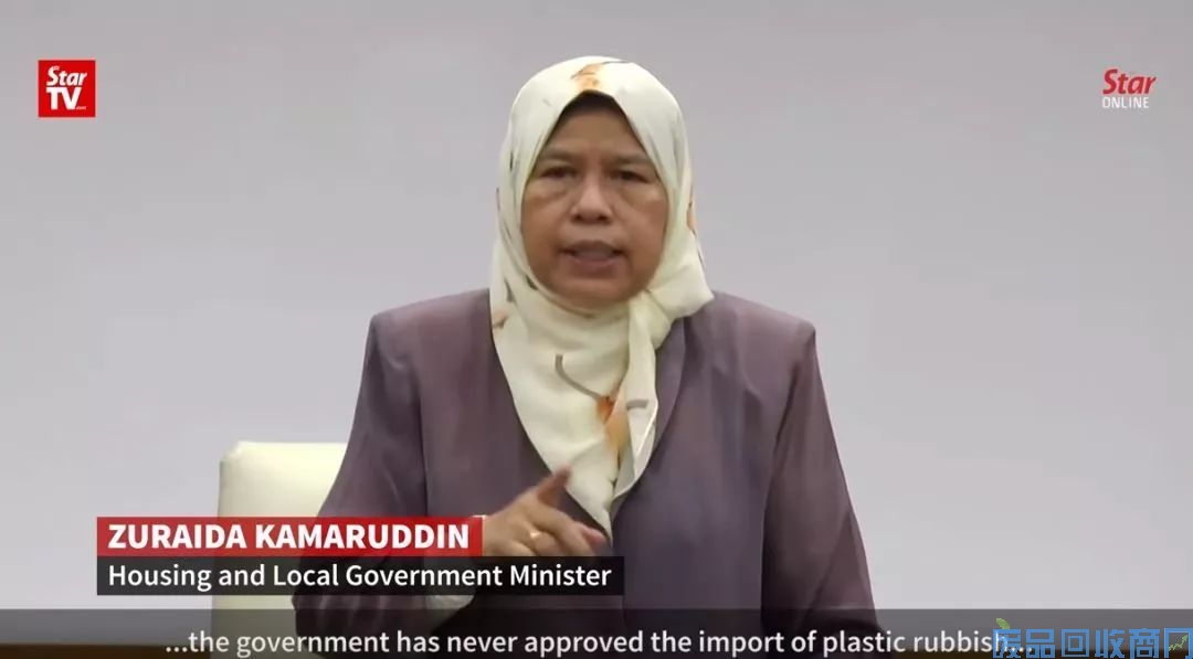 1月15日,马来西亚房屋及地方政府部部长祖莱达关于进口废塑料事宜召开新闻发布会。