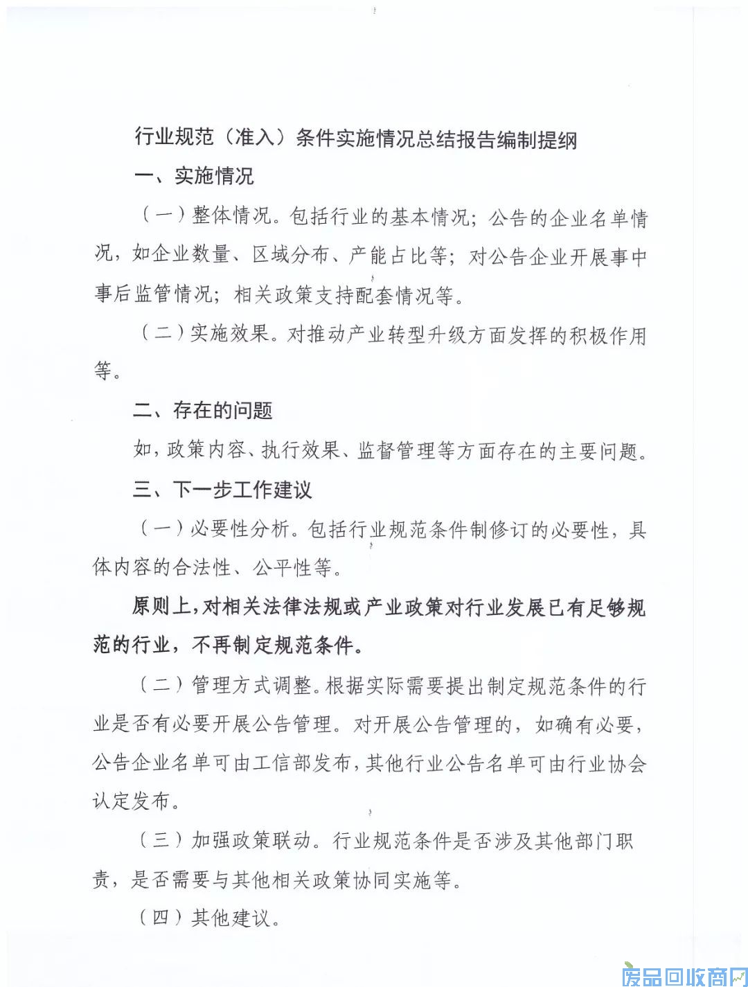 关于商请《废塑料综合利用行业规范条件》实施情况意见和建议的通知