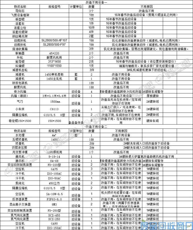 2 | 闲置设备 | 混 | 混 | 1 | 批 | 以现场实际看货为准 |