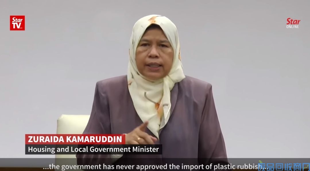 1月15日,马来西亚房屋及地方政府部部长祖莱达关于进口废塑料事宜召开新闻发布会。