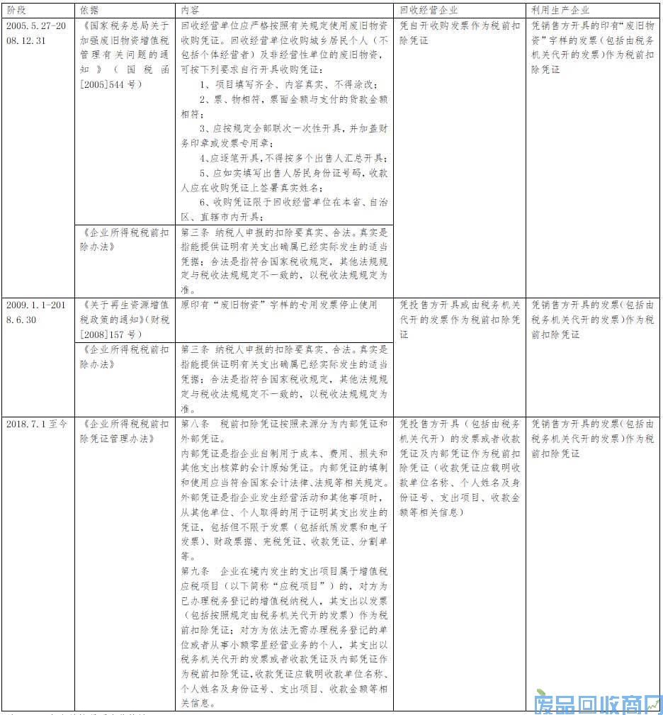 在2009-2018年间,回收经营企业企业所得税成本扣除方面较为混乱,出现税务机关不认可其将收购凭证作为税前扣除凭证、要求使用收购发票作为凭证的现象,而回收经营企业恰恰又无法从散户处取得发票,因此导致回收经营企业企业所得税税负加重。