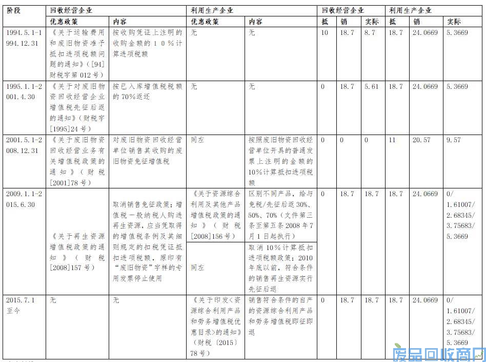 废旧物资行业自2008年增值税税收优惠取消后发展缓慢,由于回收企业不能取得进项发票,陡然加大的增值税税负使其利润缩减,整个废品回收行业陷入瓶颈期。税收政策对一行业的影响不可谓不大,那么废旧物资增值税税收优惠政策取消后,回收企业的税负历经了哪些变化,相比利废生产企业又有何区别?本文拟对废旧物资行业各阶段的税负情况进行测算,以反映行业困顿。