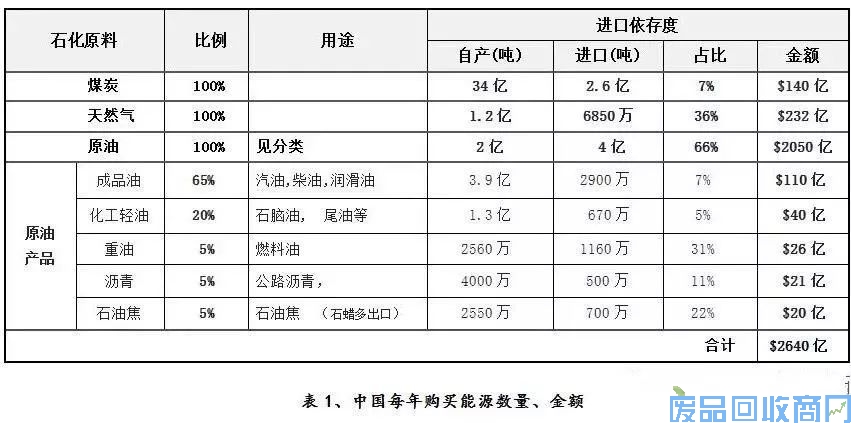 1000亿美金进口成品油、石脑油、PX等化工原料