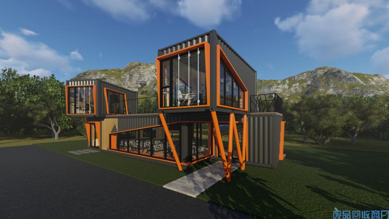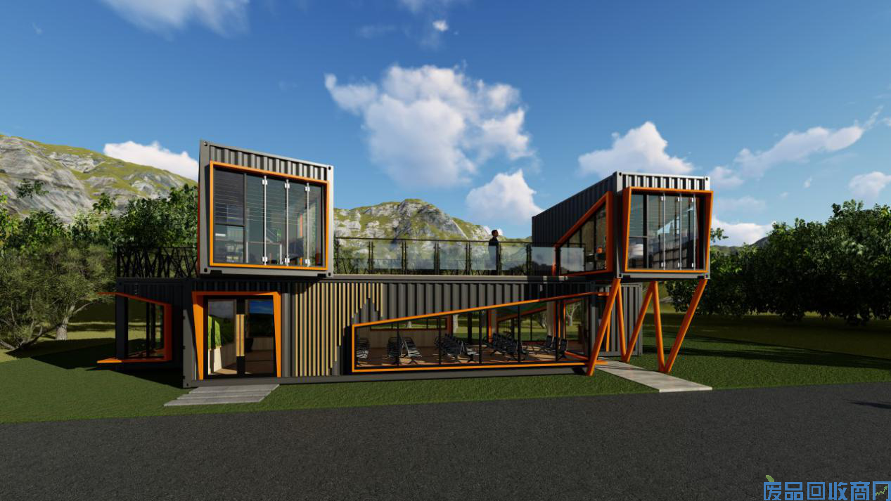 我们可以看到,这次众盒集装箱设计的接待中心,外观设计非常有设计感,由于灰色的中立性,它常常被用作背景颜色,它可以让其它色彩突出,而这里用活泼的橙色线条来穿插,点缀出新的活力。我们很难想象,工业化十足的集装箱居然与周围的景色结合得如此天衣无缝。
