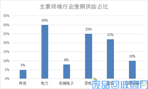 从各个终端分类来看,电力、家电、建筑占旧废总供给量的70%以上,是国内旧废的主要来源。