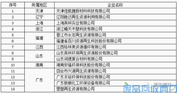符合《废塑料综合利用行业规范条件》企业名单(第二批)
