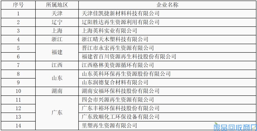 符合《废塑料综合利用行业规范条件》企业名单(第二批)