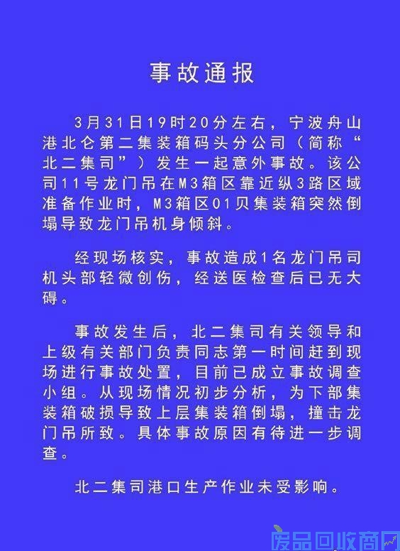 宁波港官方事故通报